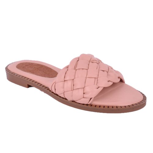 Ροζ flat παντόφλα με πλεξούδα