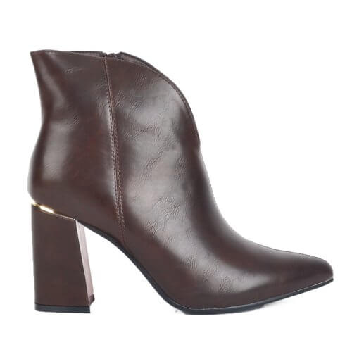 Καφέ γυναικείο ανατομικό μποτάκι με διακοσμητικό φερμουάρ