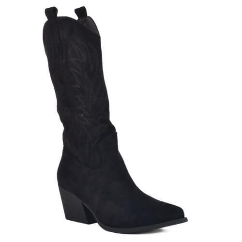 Μαύρη γυναικεία suede cowboy μπότα