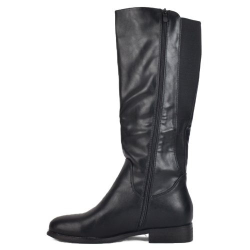 Μαύρη γυναικεία μπότα με φαρδύ λάστιχο στην γάμπα