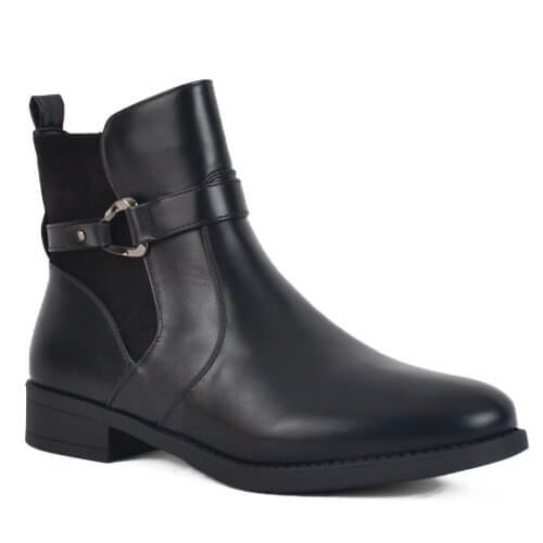 (BIG SIZES) Μαύρο γυναικείο μποτάκι με διακοσμητικό και συνδυασμό υλικών