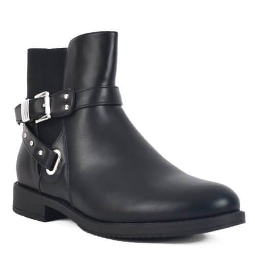 (BIG SIZES) Μαύρο γυναικείο μποτάκι με διακοσμητικά και λάστιχο