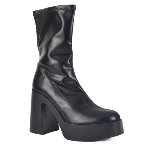 Μαύρο γυναικείο μποτάκι κάλτσα με φιάπα, σε ματ αδιάβροχο ελαστικό υλικό. Το υλικό τους είναι πλήρως ελαστικό. Η φόρμα τους
