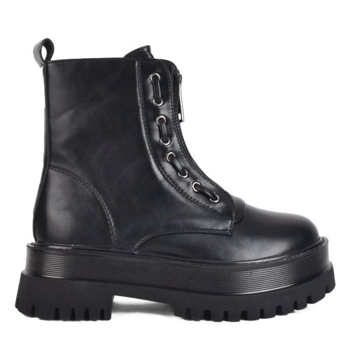 Μαύρη γυναικεία μπότα με κορδόνια